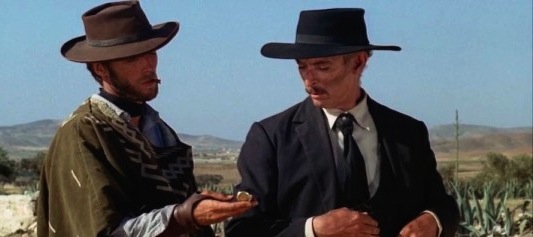 His performance as the black-clad Colonel Douglas Mortimer was Oscar-caliber: rising to the challenge of a role that required nuances of humour, wisdom and wistfulness. Although he would not resume the role in the many spaghetti westerns that he would soon make as a lead actor, he would use some of the character’s trademarks that became his signature: the moustache, the black clothes, flat hat, cross-draw holster, and of course, a pipe. Because the movie opens with a scene of Mortimer instead of The Man With No Name, I had thought that Van Cleef was the star, not Eastwood. No matter- he steals the film. He had tremendous presence, charisma and vitality. But simply, this cat was cool!
